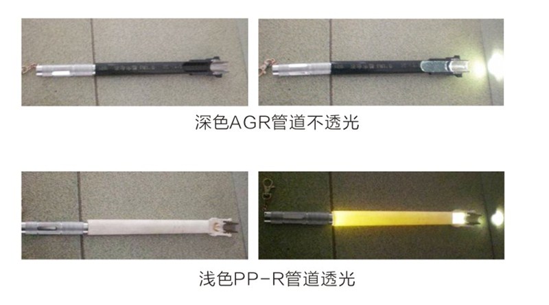 AGR管道的特殊顔色不透光,管道長(zhǎng)期使用不會(huì)滋生綠苔,不會(huì)影響水質。